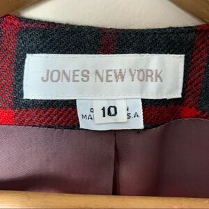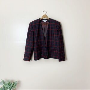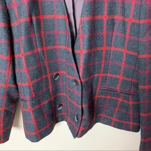 [Jones New York] Vintage Dark Gray & Red Plaid Academia Wool Blazer