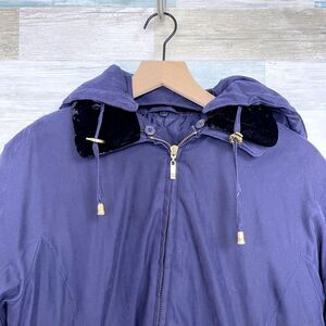 Jones New York Vintage Insulated Winter Jacket Blue Velvet Collar Womens Small