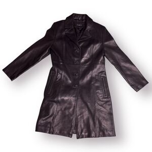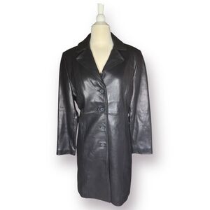 Jones New York Classic Vintage 90's Black Lined Genuine Leather Jacket Size Large Petite With Pockets and Buttons 4 buttons going down perfect for fall and winter