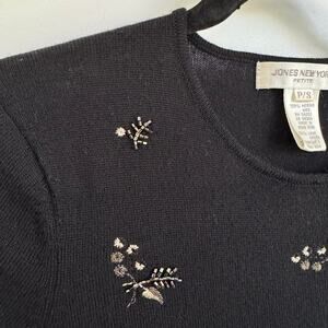 Jones New York Vintage Womens Pure Merino Wool Beaded Sweater Size SP Petite