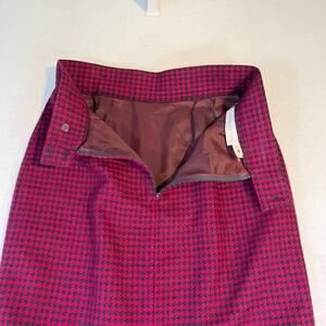 Jones New York Vintage Wool Pencil Skirt 10 Rear Zip Slit Pink Black Houndstooth