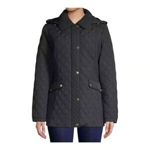 Jones New York Water-Resistant Hooded Quilted Raincoat Size M