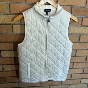 Jones New York White Quilted Front Knit Cotton Vest Full Zip Size Small