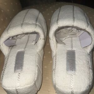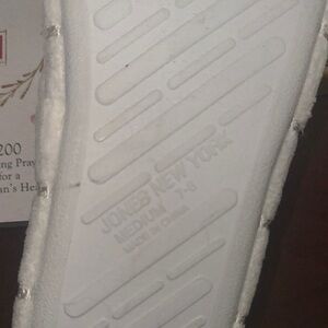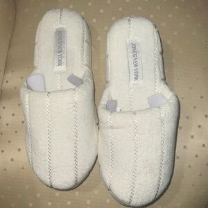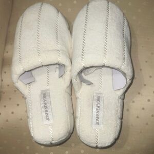 Experience ultimate comfort with these Jones New York white slippers, designed for a snug fit and crafted from soft materials. Perfect for lounging at home, these slippers offer a blend of style and coziness. The classic white color adds a touch of elegance to your relaxation time.size 7-8