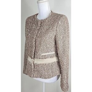 Jones New York ~Woman Size 4~Brown/Beige w/Silver Stripes Business Blazer Jacket