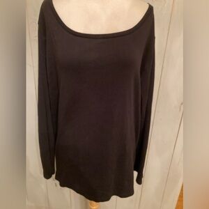 Jones New York Woman Top Sz 3X Black Long Sleeve Cotton Round Boat Neckline