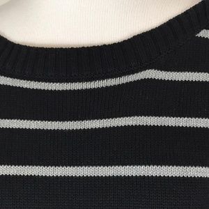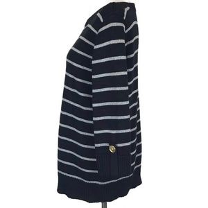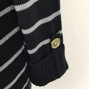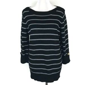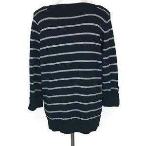 Jones New York Womans Sweater Size XL Black Metallic Strip 3/4 Sleeve Buttons