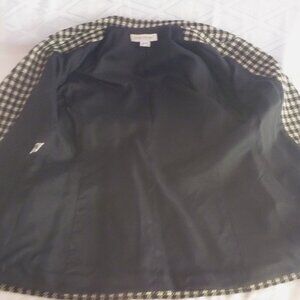 Jones New York Women's Blazer 100% Pure Wool Black White Checkered Pattern