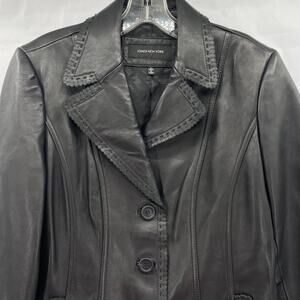 Jones New York Women Black Leather Jacket