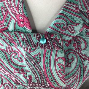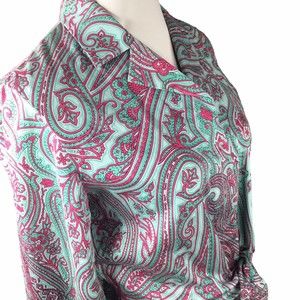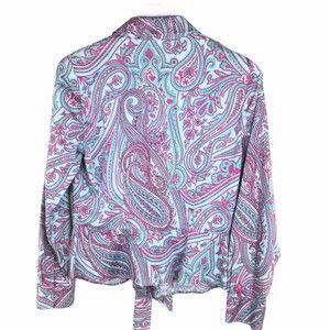 Jones New York Women Blouse Tie front Small Green Pink Paisley Small