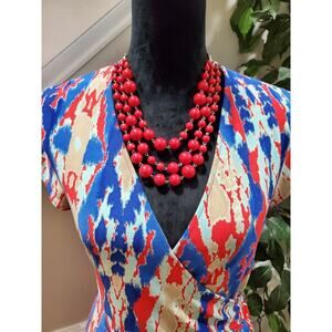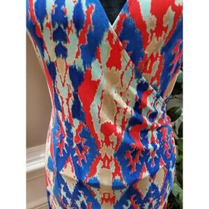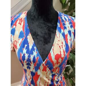 Jones New York Faux Wrap Women Multicolor Polyester V-Neck Cap Sleeve Knee Length Dress M.