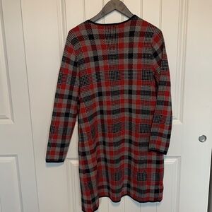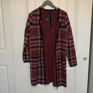 Jones New York Women Houndstooth Knit Plaid Sweater Long Duster Jacket NWT Small
