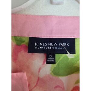 Jones New York Women Pink w/Multicolor Floral V-Neck Boxy Blouse size 1X
