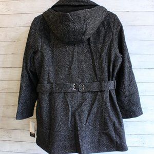 Jones New York Women's Black Gray Belted Winter Coat Jacket Plus Size 1X