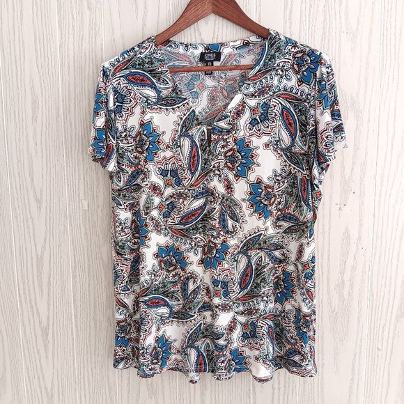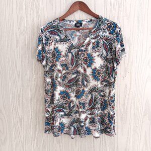 Jones New York Women's Blouse Floral Paisley Short Sleeve Casual Dressy Top Size XL