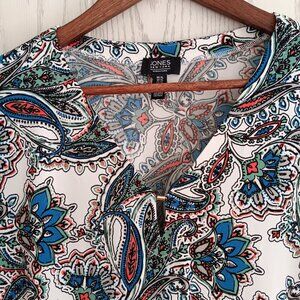 Jones New York Women's Blouse Floral Paisley Short Sleeve Casual Dressy Size XL