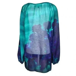 Jones New York Womens Blue Green Pullover Sheer Top Large