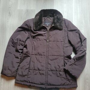 Jones New York Womens Brown Fur Collar Jacket Size M