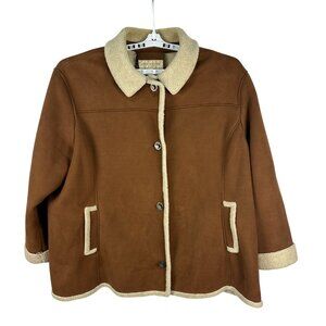 Jones New York Womens Brown Shearling Jacket Size 2X