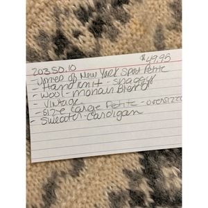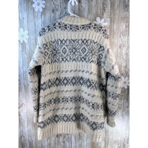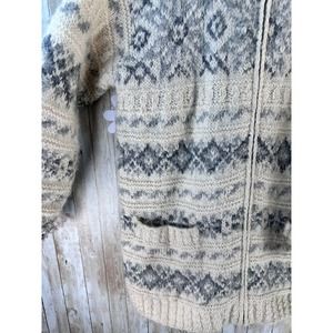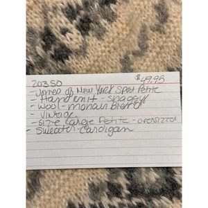 Jones New York Womens Cardigan Sz L Petite Ivory Gray Hand Knit Wool Blended