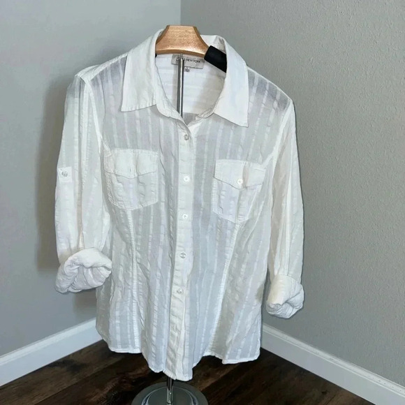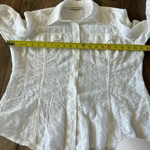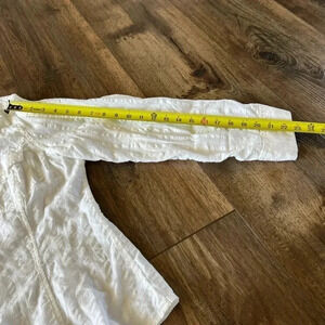 This top is in excellent pre-owned condition. Tappers in at waste for a slimming fit. Please see pictures for approximate measurements 100% cotton.