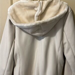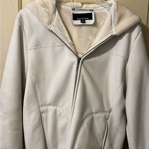 Chic and cozy teddy jacket. Soft texture with a stylish hood. Ideal for layering.