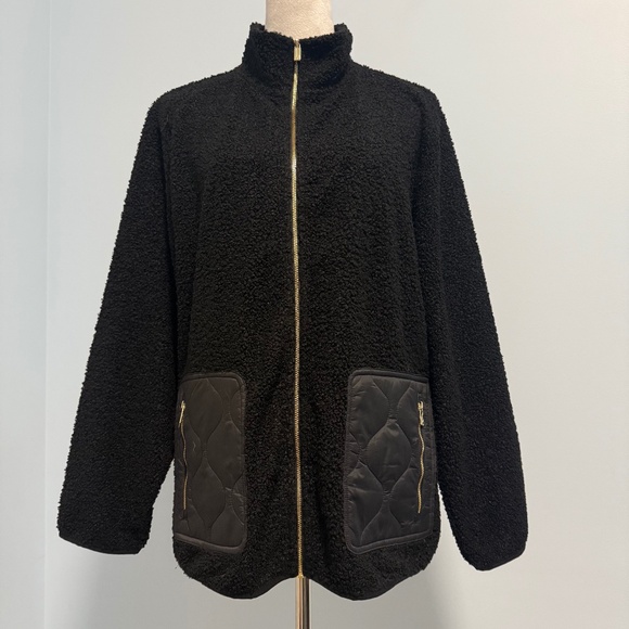 Jones New York signature Women's Full Zip Side Pockets Fleece Sherpa Black Jacket Size 1X. New.
