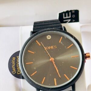 This trendy watch by Jones New York features a genuine diamond fixture on the dial.