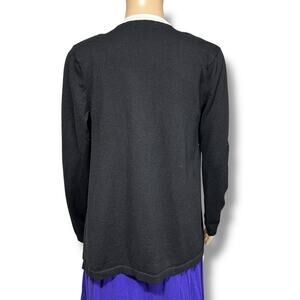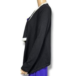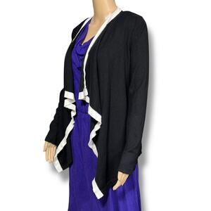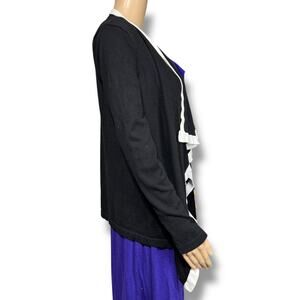 Knit Cardigan Sweater Open Front Asymmetrical Black White Jones New York
