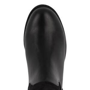 Women's Leodenn Knee High Riding Boots from Jones New York. This tall shafted boot is an extremely comfortable and stylish heeled boot that can be dressed up or down depending on the occasion. With a vertical strap and buckle accent and faux suede calf with faux leather vamp and trim, these boots are sure to turn heads.