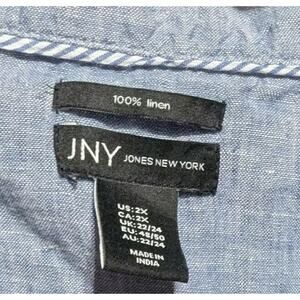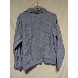 Jones New York Womens Linen Button Up Jacket Sz 2X Blue Costal Lightweight