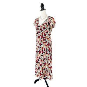 Jones New York Women’s Multicolored Silk Flutter Sleeve Slipover Dress Size 14P