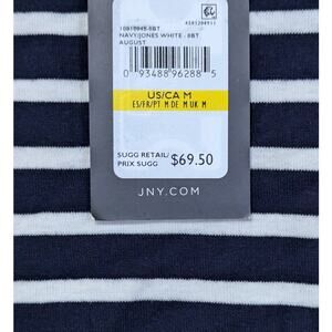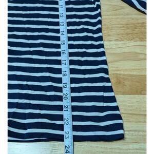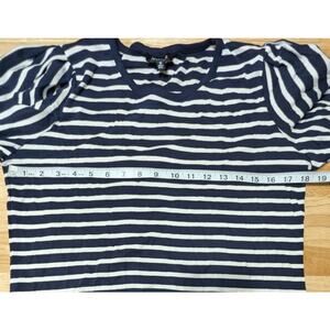Jones New York Womens Navy White Stripe Long Puff Sleeve Round Neck Cotton Top M