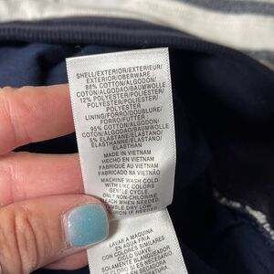 Jones New York Women’s NAVY Blue and Beige Striped Skort with pockets, Drawstring. Looks black in first pics but its NAVY