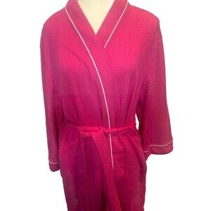 Jones New York Women's PINK W/ White Trim Waffle Knit Polyester Robe SZ L/XL