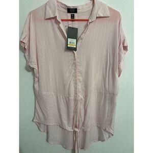NWT Jones New York Women’s Pink & White Striped Hi-Lo Hem Blouse Size S