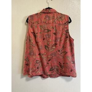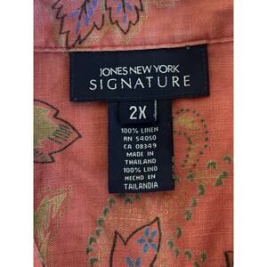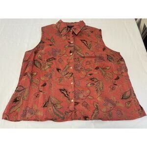 Jones New York Women’s Plus Size 2X Linen Button Down Blouse Sleeveless Floral