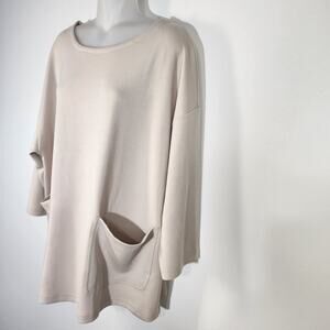 Jones New York Womens Pullover Cozy Top Size 1X Front Pockets 3/4 Sleeve Beige