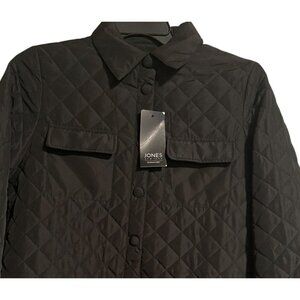 Jones New York Womens Quilted Black Snap Front Jacket Size Small
