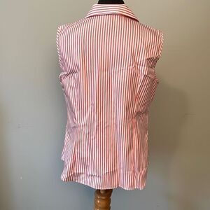Jones New York Women's Red White Striped Button front Sleeveless Blouse