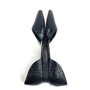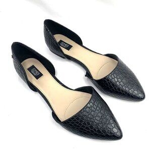 Chic D'Orsay style slip on Seneca flats by Jones NY in glossy black faux reptile print leather with cushioned insole and rubberized traction outsole. Size women's 10M.