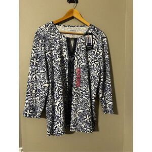 Jones New York Women’s Size XXL Long Sleeve Blouse Blue Crochet Detail NWT
