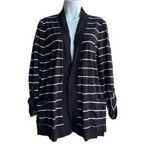 Jones New York Women's Striped Open Front Cardigan Black/White Size L
