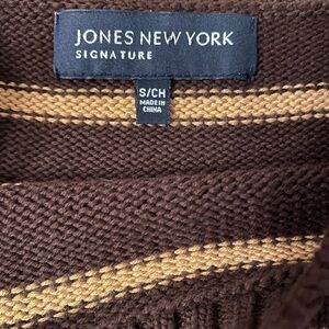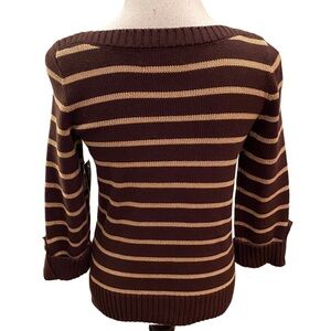 Jones New York Women's Sweater Size: Small Roll Up Button Boat Gold and Brown Stripe New with tags! See all pics.