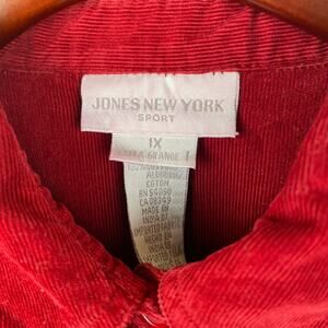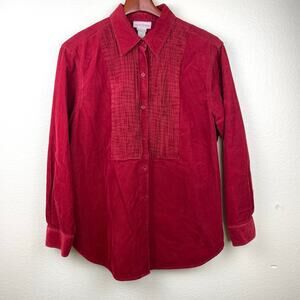 Jones New York Womens Top Sz XL Corduroy Button Up Tuxedo Western Boho Artsy Red Long Sleeve Cowgirl. Made in India