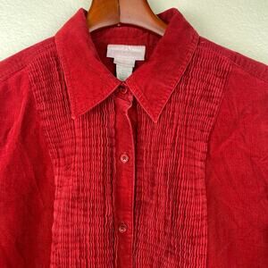 Jones New York Womens Top Sz XL Corduroy Button Up Tuxedo Western Boho Artsy Red