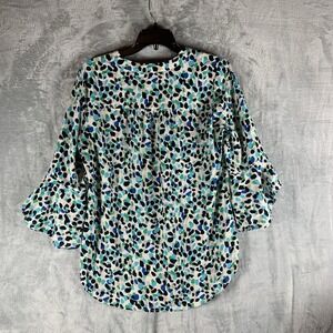 Jones New York Women's Tunic Top S Multi Dot Abstract Bell Sleeve V Neck
