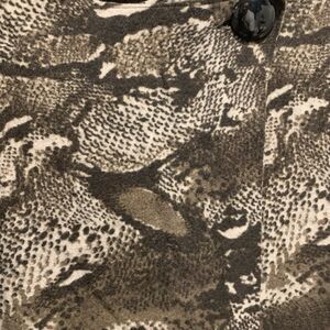 Add a touch of wild to your wardrobe with this Jones New York Wool Reversible Animal Print Poncho Cape. Made from soft wool blend knit fabric, this mid-length overcoat features a button closure and a striking animal print pattern that is sure to turn heads. The poncho is one size fits all and can be worn for any occasion, whether it's a casual day out or a business meeting. The lining is also made of wool blend for added warmth and comfort. This poncho is perfect for nature lovers, animal enthusiasts, and teachers who want to make a statement in the city. It is easy to care for and can be dry cleaned only. Made in Vietnam, this poncho is a classic piece that belongs in every wardrobe.