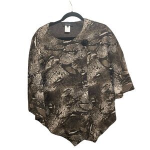Jones New York Womens Wool Blend Animal Print Poncho Cape One Size Boho