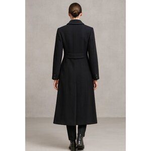 Crafted from a warm wool-blend with a sleek double-breasted front and elegant tailored silhouette.